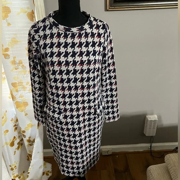 Boden Dresses Boden Long Sleeve Navy Offwhite Houndstooth Knit Dress Long Sleeve Size 6 Poshmark